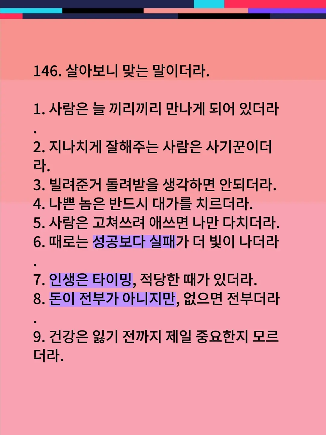 146. 살아보니 맞는 말이더라.