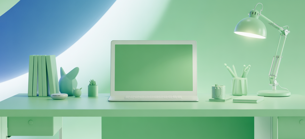 - 모니터 주변에는 초록 식물 1–2개만, 나머지 장식은 최소화한다.